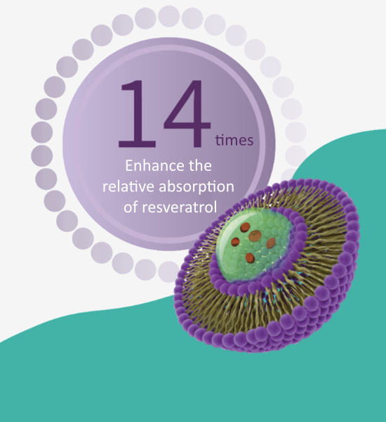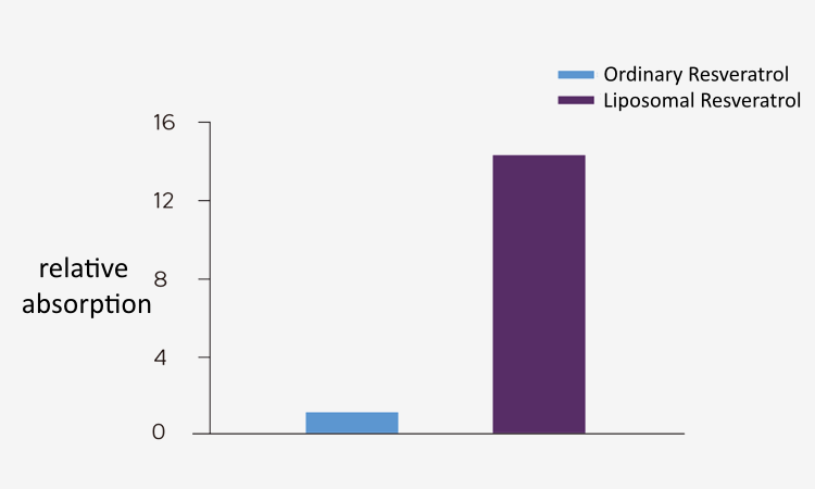 레스베라트롤만을 섭취한 경우와 비교했을 때, 리포좀을 통한 레스베라트롤의 상대적 흡수율은 약 14배 증가했습니다.